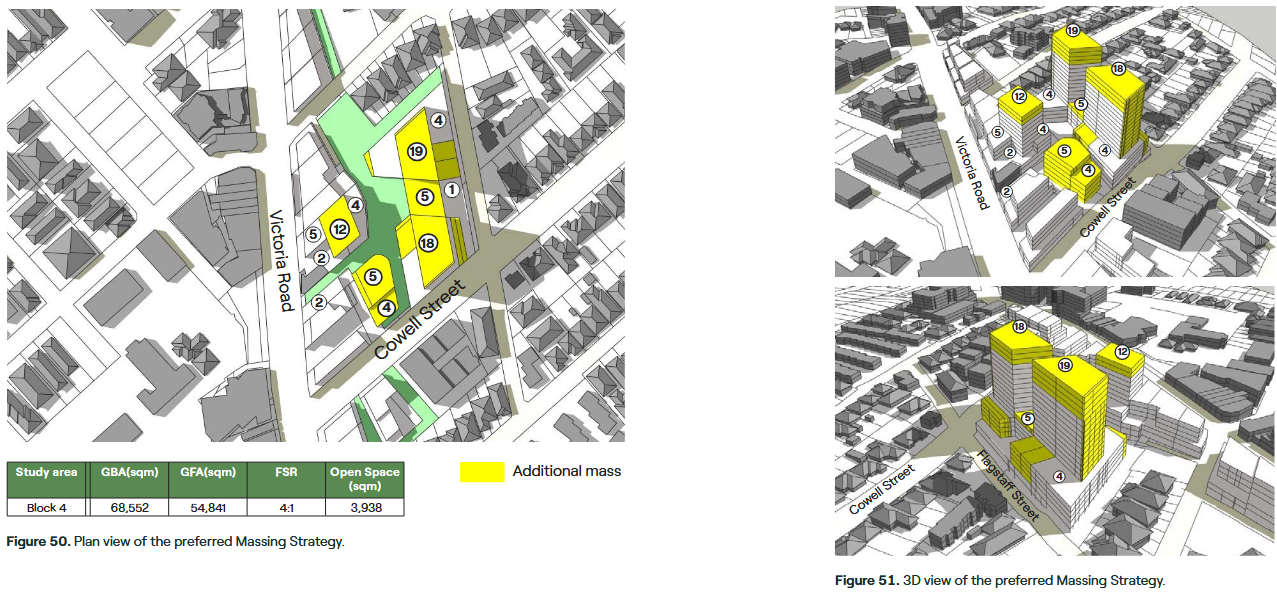 Let's talk height for a moment. We've spoken about Floor Space Ratio, profit, but now the nuts and bolts: what would this actually look like if someone builds it? Well, here you go. The preferred "Massing Strategy" extracted from the master plan for you.